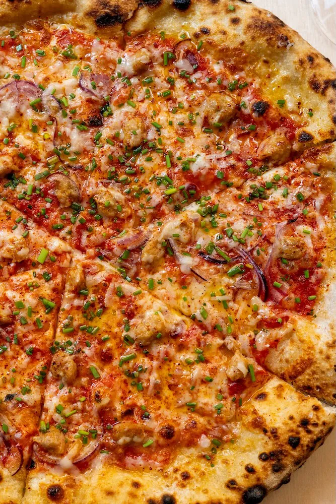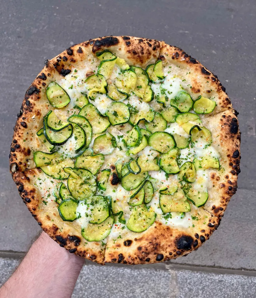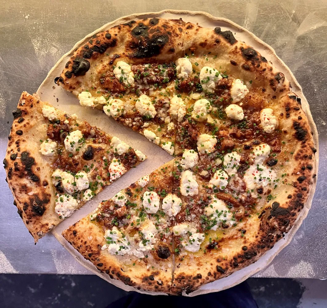 There, he serves a focused menu of six pizzas made with 36-hour fermented sourdough and topped with seasonal ingredients, showcasing a careful balance of technique and creativity.