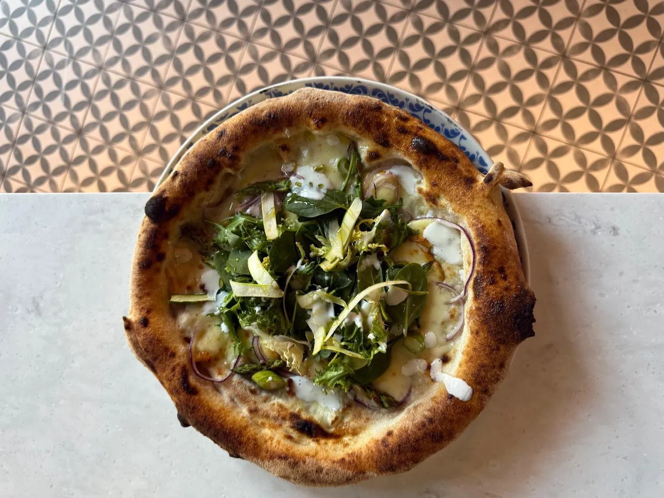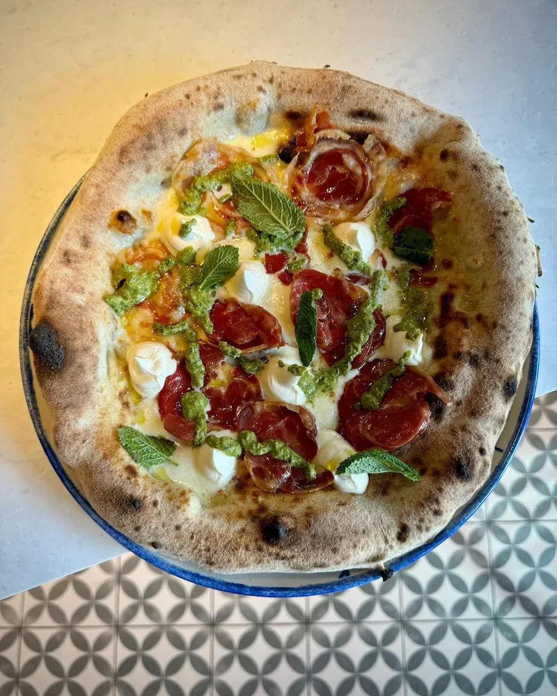 His pizza style blends type 1 and rye flours with a tangy, balanced flavor. Toppings marry Scandinavian and Italian influences, while all cheeses are made in-house. Inspired by texts like Omnia Fermenta and Il Lievito Madre, Michele continues refining his art with knowledge and passion.