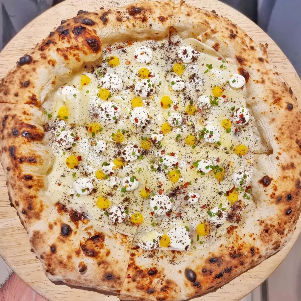 Salvatore’s signature “different Neapolitan” pizza features a long-fermented pre-dough (biga), which results in a well-cooked, airy, and highly digestible crust that sets his style apart in the modern pizza scene. He places great importance on ingredient selection, often sourcing carefully chosen raw materials from the Campania region to ensure quality and authenticity.